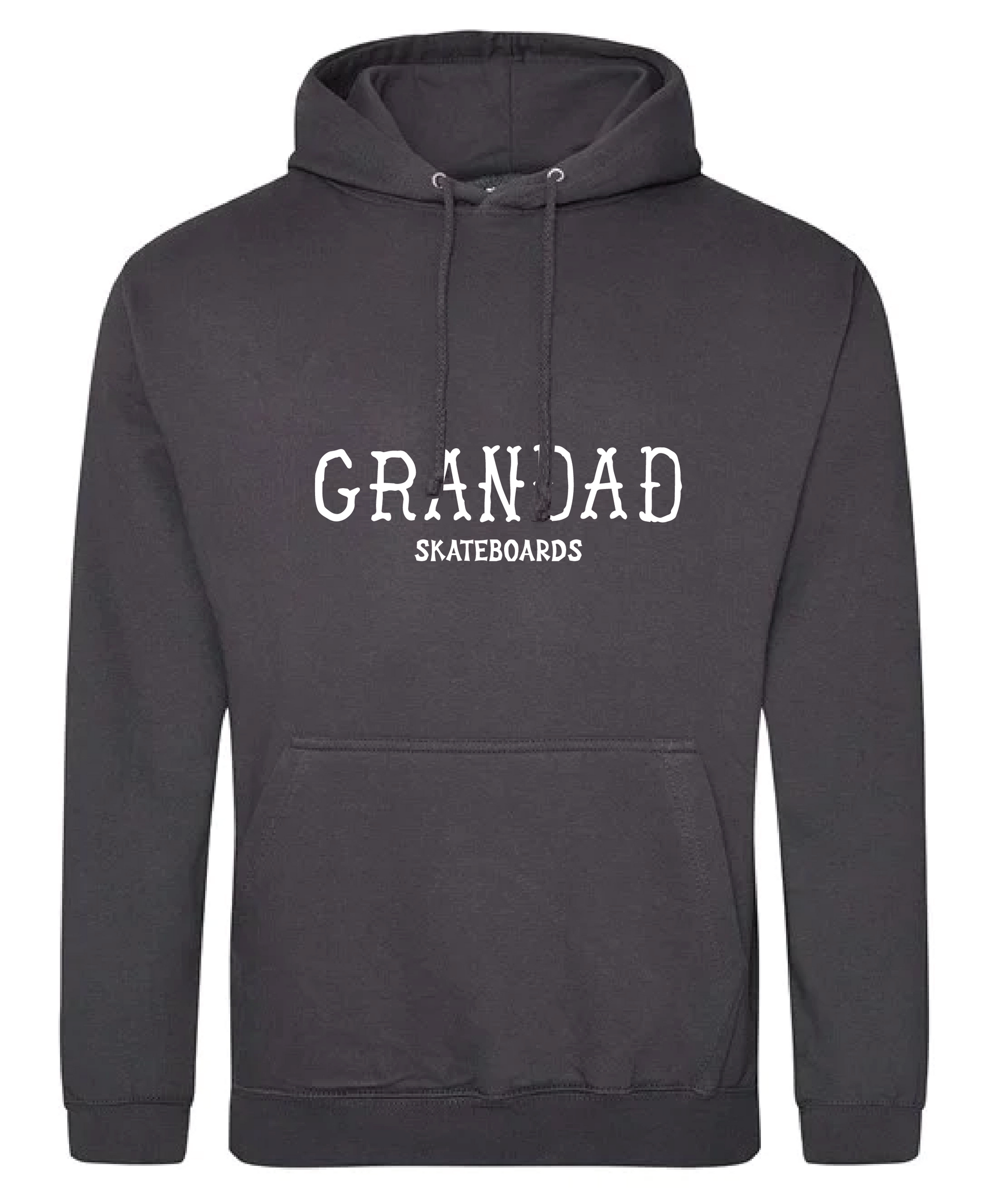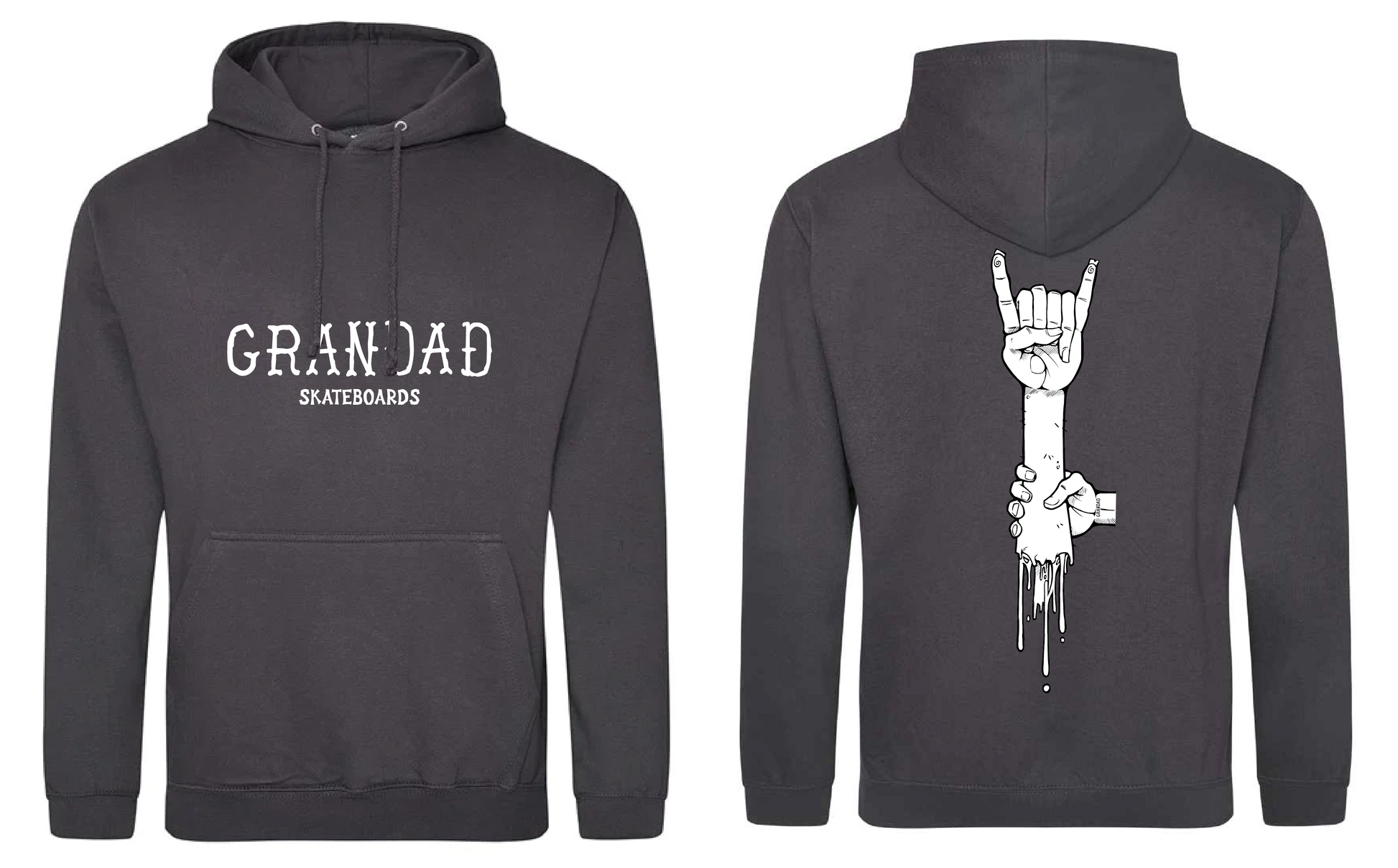 Grandad Skateboards Dead Alen Logo Hoody with Back Print. Storm grey hoodie. 80% cotton, 20% polyester. Although the sizes quoted are technically men's it's all just unisex so adjust accordingly.