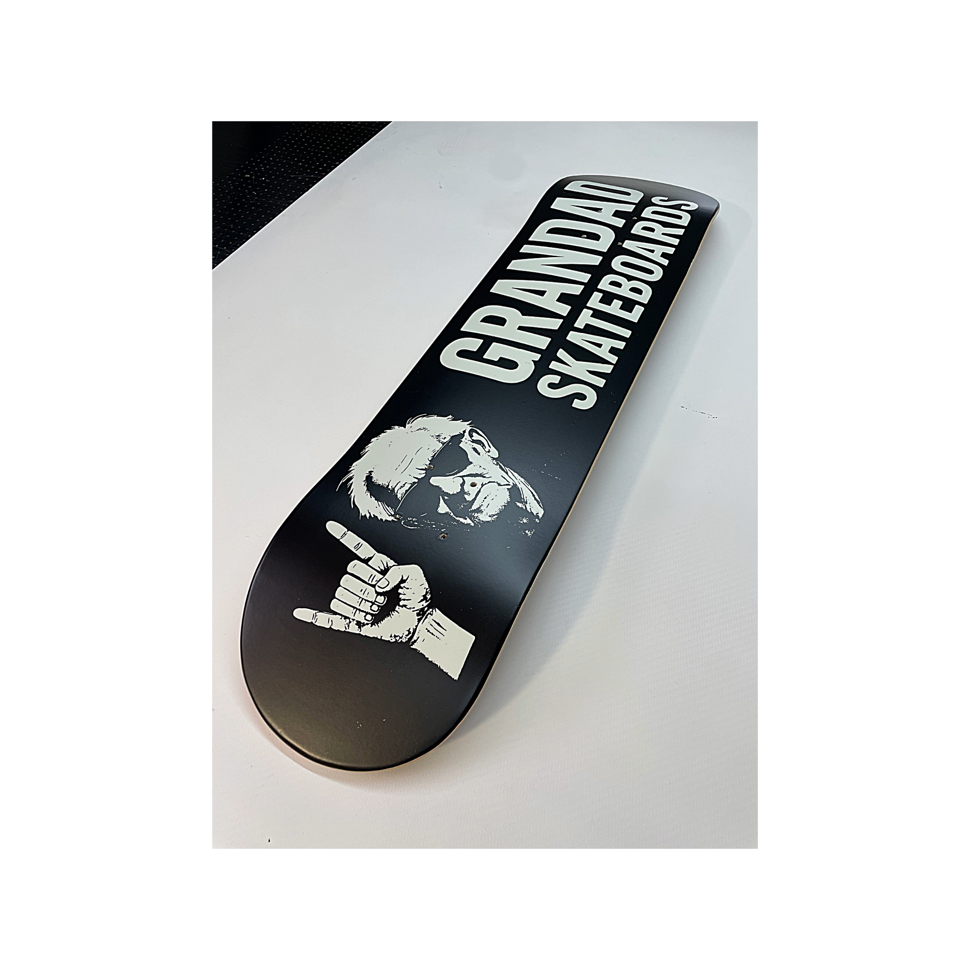- Black and OffWhite Grandad Skateboards Deck with Old man design